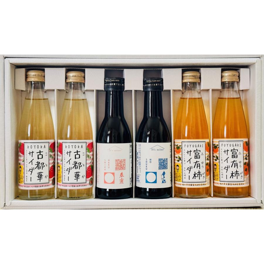 飲み比べ・飲み切りに最適なサイズ感の180mlの奈良市にある「春鹿」「豊祝」の有名酒蔵と、奈良の「古都華」「富有柿」を使用したサイダー各200mlを詰め合わせにしたギフトセットです。奈良酒をサイダーで割って飲む「奈良しゅわボール」だととても飲みやすくなりますので日本酒の苦手な方でも是非お試しください。