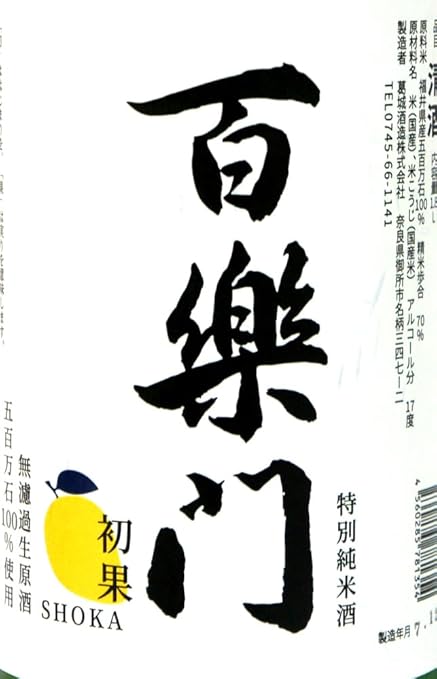 | 商品名 | 百楽門特別純米酒「初果」720ml |